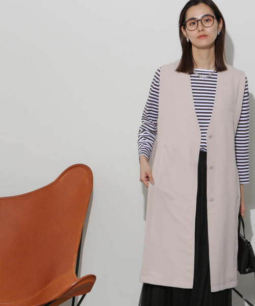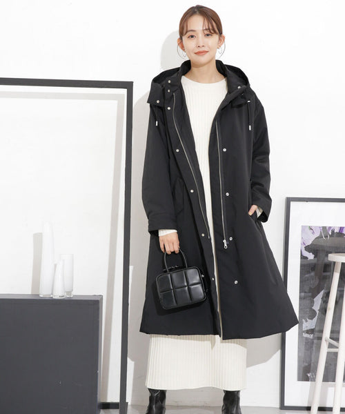 撥水加工?機能中綿 ノーカラーキルティングロングコート -